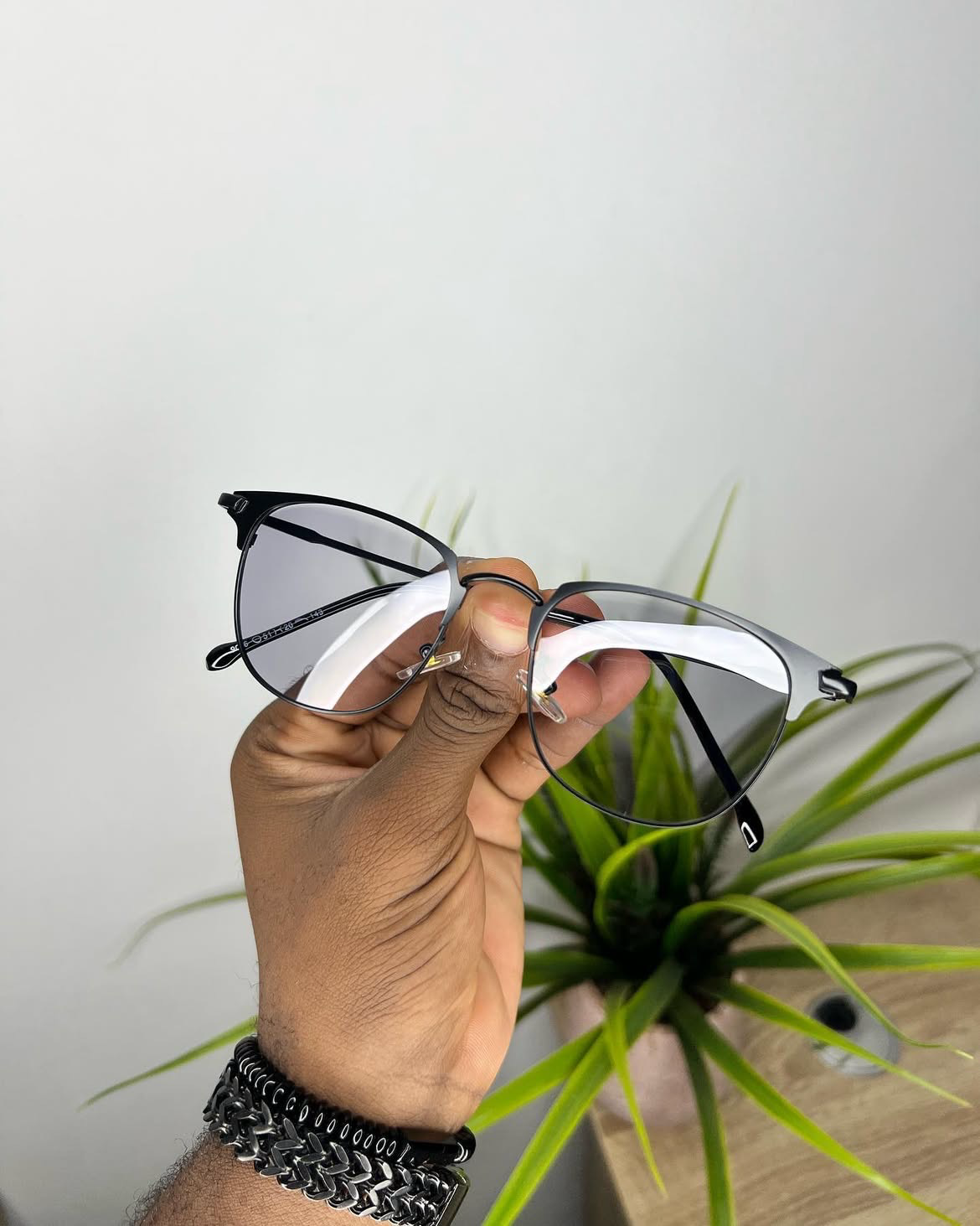 Lunette de protection photochromique (Noir au contact du soleil et clair en absence de soleil, la nuit) .